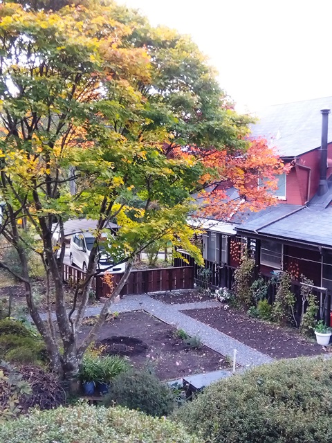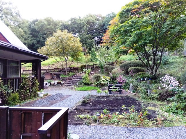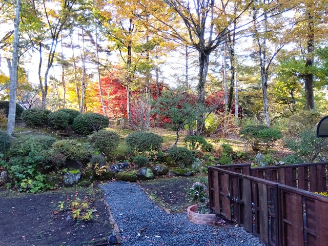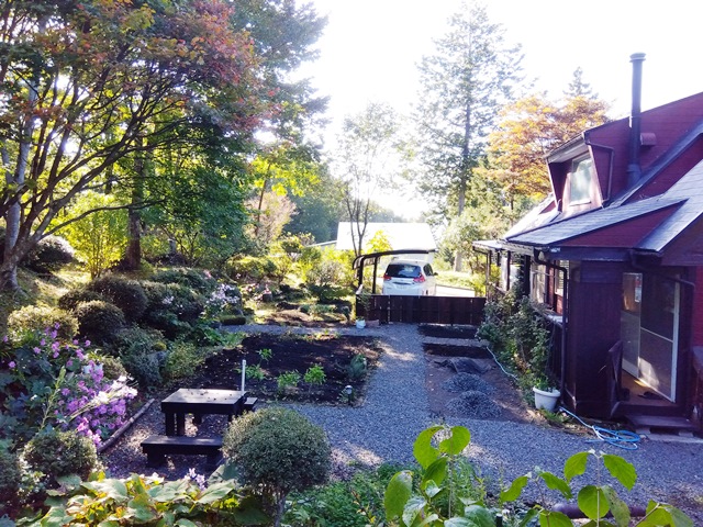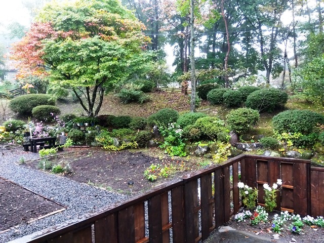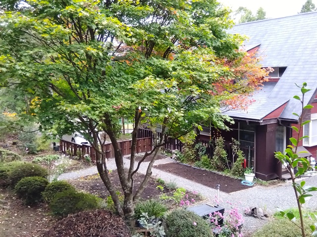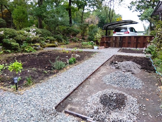 2025年秋の澄明庵 9月ごろから庭の改造を行いました。ようやく11月に完成しましたので、ご覧下さい。 手前左に和風のフェンスを作り、庭全体が締まるようにしました。(本心は害獣の侵入を防ぐためです?!) これまで庭の右側半分が砕石敷きで、全体に平面的になっていたので、少し和風庭園風に変えようと思いました。 右側半分の砕石をすべて取り除き,野菜畑か花畑にする予定です。砕石を処理しているところです。 下に防草シートを敷いていたので、砕石を処理するのは比較的簡単でした。 ほぼ完成に近い澄明庵の庭の全体像です。 フェンスと庭の小道がうまく調和していると良いのですが・・・ 砕石小道の縁取りを行っているところです。メリハリが出ますね。角材を腐食しないようにバーナーで黒焦げにして設置します。たいへんですけど。 フェンス側から見た庭です。奥にシンボルツリーのカエデの木が見えます。 庭の小道の縁取りがほぼ終わり、すっきりしてきました。もう紅葉が始まっています。 これから落ち葉でいっぱいの庭になります。 澄明庵の周辺の木々も紅葉が始まりました。 Top へ